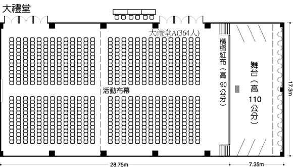 設備:200張椅子、白板/筆、2支對頻無線麥克風、擴大機、4顆環繞喇趴、無限WIFI、